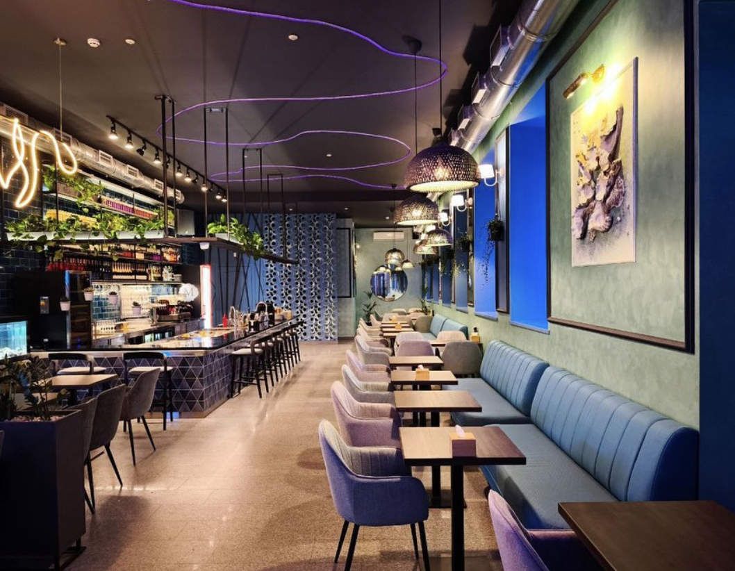 Новий ресторан мережі Mushlya працює з великим контактним баром: в коктейльній карті є класика, авторські коктейлі та окрема лінійка моктейлів. Традиційно в меню є устриці, булоти, мідії казанками, плато морепродуктів, а також легкі закуски та авторські роли.