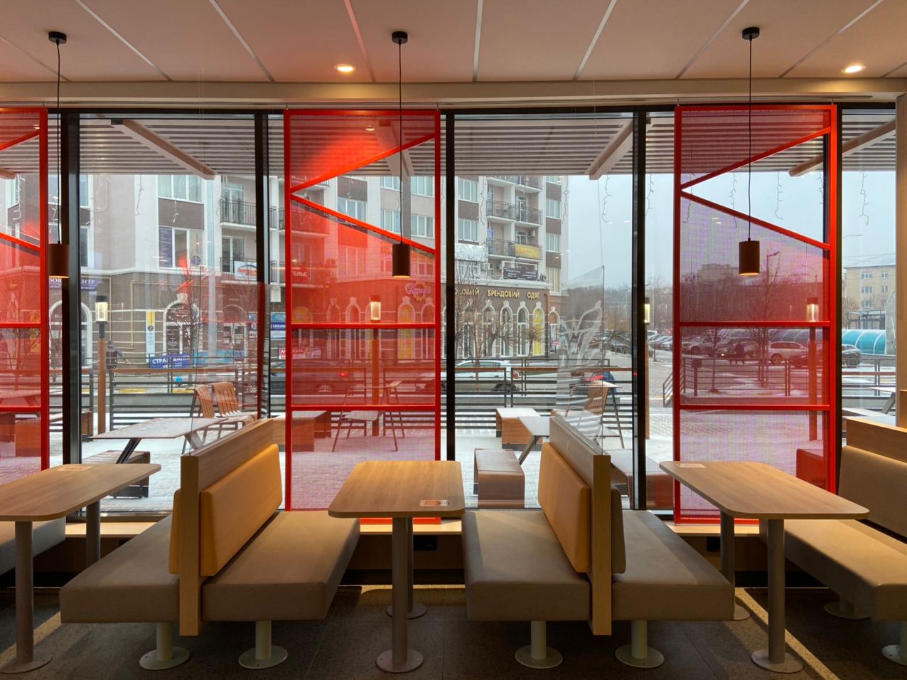 McDonald’s у Бучі має новий формат «з досвідом майбутнього», а інтер’єр закладу оформлено в стилі «з комфортом для людей», у якому поєднано високі технології та турботу про кожного клієнта.