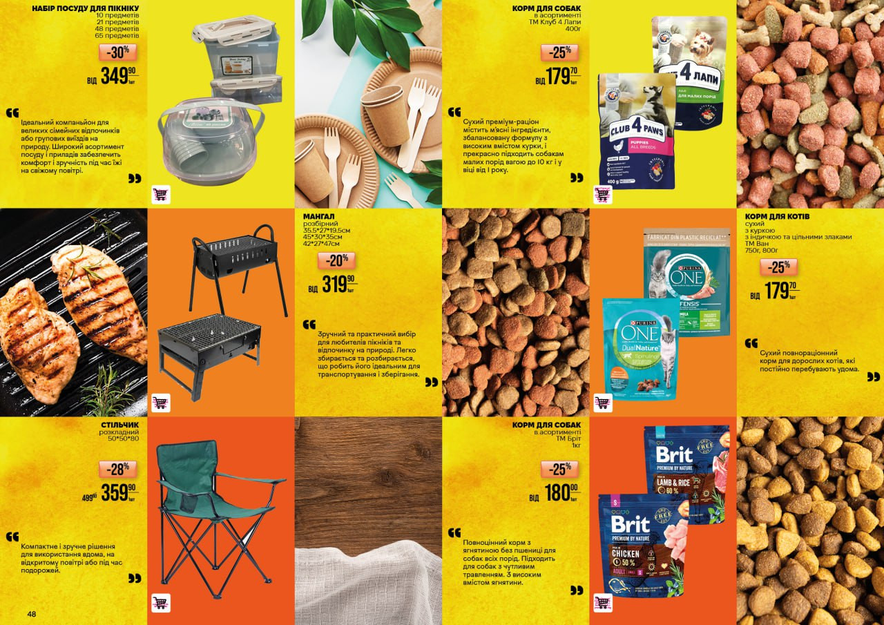 У каталозі ви знайдете також десятки інших товарів за акційними цінами. Це солодощі, молочні продукти, десерти, соуси та спеції, чай, кава та багато іншого. У Varus також є все для різномаїжного пікніка на природі — від сезонних продуктів до посуду та мангалу.