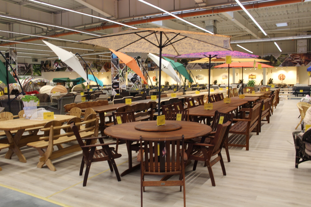 По-третє, поряд з цією зоною облаштований зал, де пропонується інвентар для дачі та відпочинку: крісла, гойдалки, лавки і багато іншого. Завдяки фантазії співробітників все виглядає мальовничо та природньо.