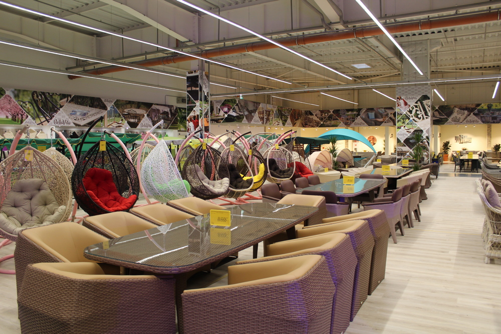 А на «мінус першому» поверсі знаходиться найбільший центр меблів – 4500 кв. м диванів, крісел, кухонь, спалень, віталень, килимів і так далі. Від достатку і асортименту буквально розбігаються очі.