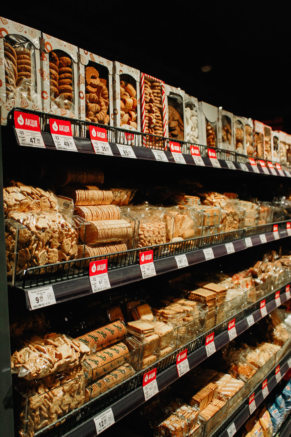 В магазині представлено широкий вибір продуктів з різних країн світу та від українських виробників. В асортименті – свіжі овочі, фрукти, м’ясні делікатеси, сири з різних країн, ковбаси, молочні продукти, заморозка, кондитерська продукція тощо. Також на полицях магазину присутня продукція власних торгових марок Varus, що поєднує чудову якість та доступні ціни.