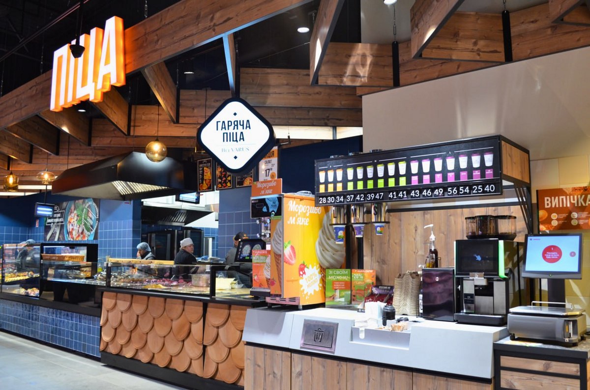 Асортимент магазину охоплює ключові FMCG-категорії: м’ясо, риба та морепродукти, молочна продукція, сири, фрукти й овочі, а також сегмент готових страв, випічки, WOK, фрешів і кондитерських виробів. Окремим функціональним блоком у торговому залі виступає Varus Cafe — зона власного виробництва з гарячими стравами та піцою з печі, що відповідає стратегії мережі з розвитку форматів швидкого споживання.