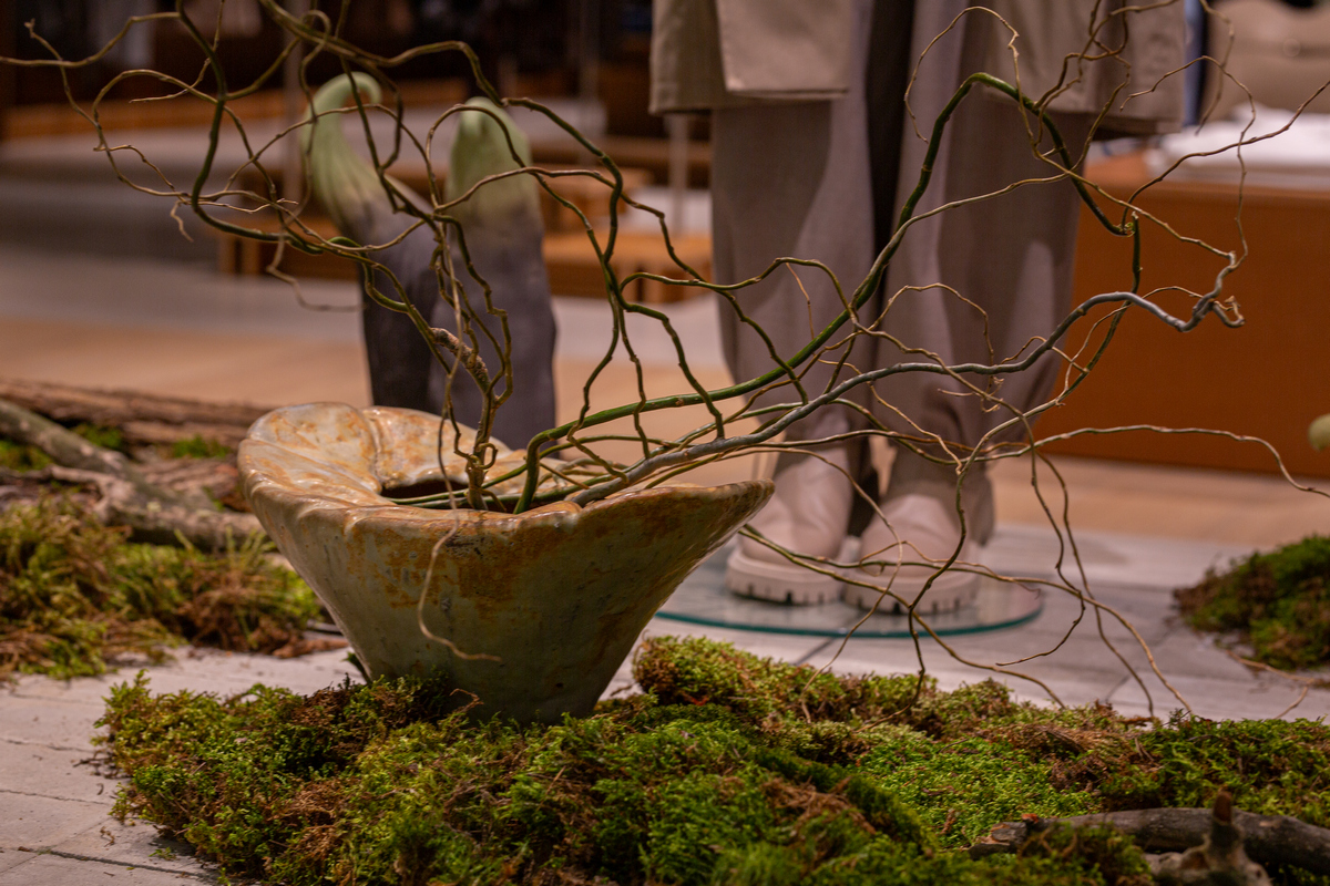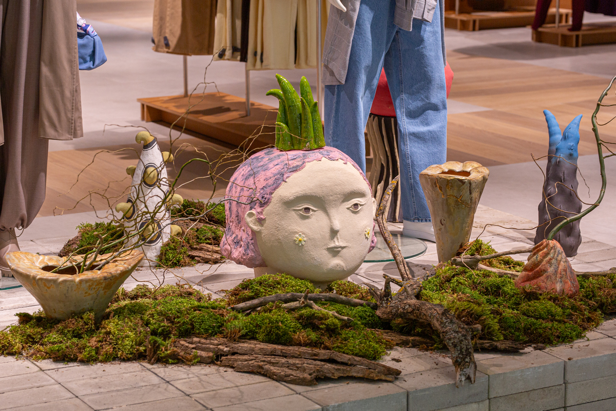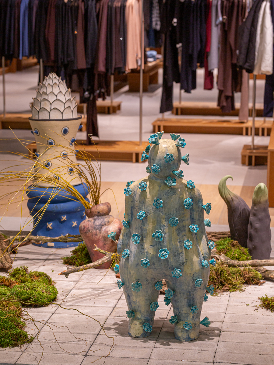 Спеціально до відкриття вхідну групу у новому магазині перетворили на арт-інсталяцію “Зачарований ліс” у колаборації з українськими митцями та майстрами. Тут представлені керамічні арт-обʼєкти від бренду Maslo Ceramics, майстри якого у своїй творчості переосмислюють взаємозвʼязок природи та людини та кераміка ручної роботи від Darya Pedorenko Ceramics. Декоровано інсталяцію мохом, гілками та корою дерев з лісів Київщини.