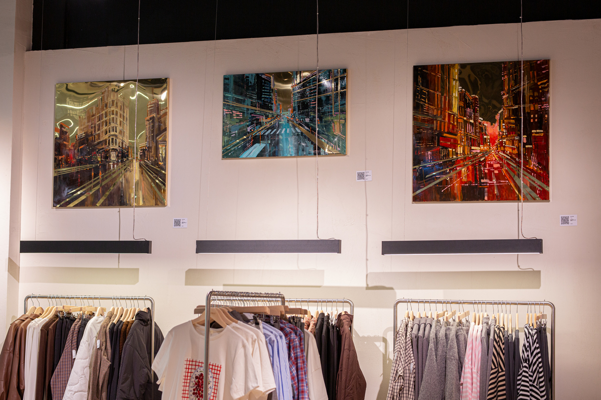 Стіни нового магазину також стали арт-простором для прояву сучасних митців. Тут представлені художні роботи з серії “Міста” на купольних металевих полотнах від Аліни Степанової. Вони створюють незвичні оптичні ефекти та містифікують простір. Всі. Свої став майданчиком й для благодійного арт-проєкту “Війна голосами дітей”, який БФ “Голоси дітей” створили у колаборації з українськими артистами.