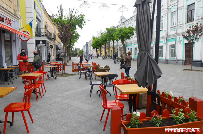 З понеділка в Житомирі відкрилися торгові центри, але міська влада ввела певні правила для магазинів одягу та взуття – покупці обов’язково повинні використовувати одноразовими рукавичками. Що стосується літніх терас кафе, ресторанів, а також відкриття салонів краси та перукарень, то тут вони почали роботу одними з перших. Зрозуміло, з дотриманням всіх запобіжних заходів.