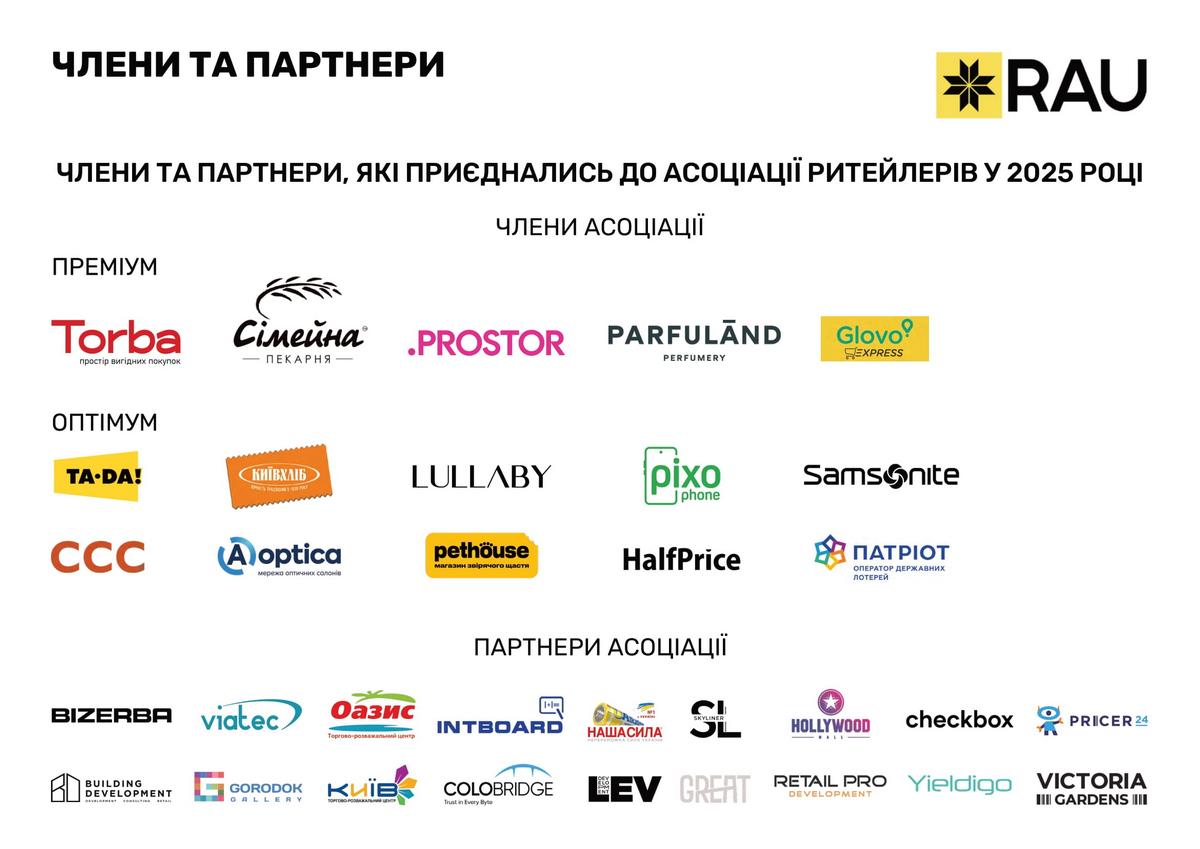 У 2025 році до Асоціації приєдналися 14 нових членів та 18 партнерів, що ще більше посилило нашу експертність і представництво галузі. Загалом 110 компаній-членів нашої Асоціації забезпечують роботою понад 450 000 українців, а їхній виторг за перше півріччя 2025 року склав 936,6 млрд грн, що на 17% більше ніж у 2024-му. Ритейл посідає друге місце за сплатою податків: за 2024 рік сплачено понад 144 млрд грн.