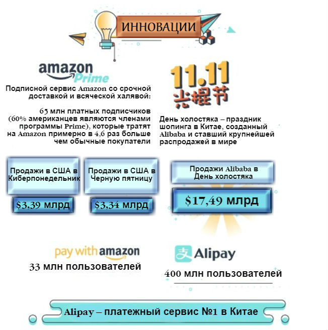 Если вспомнить о Pizza Hut, которая запустила онлайн-заказы своей продукции в 1994 году, и Amazon, продающий книги с 1995 года, становится понятно, что история электронной коммерции насчитывает уже больше 20 лет. Сейчас, как показывают многочисленные исследования, она переживает настоящий бум. И без сомнения, крупнейшими игроками на этом рынке являются Amazon и Alibaba.