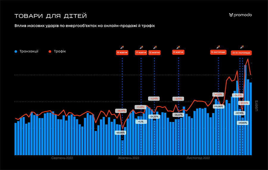 10 октября Украина столкнулась с новым этапом российской агрессии – ударами по объектам энергетической инфраструктуры. Команда Promodo проанализировала, как массовые аварийные отключения света по Украине оказывают влияние на продажи и трафик онлайн-магазинов.