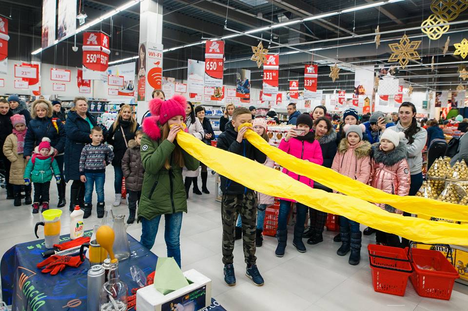 Открытие гипермаркета прошло в торжественной обстановке, были приготовлены призы и подарки для первых посетителей, конкурсы, розыгрыши, и выступления аниматоров. При желании к ним могли присоединиться и гости праздника.