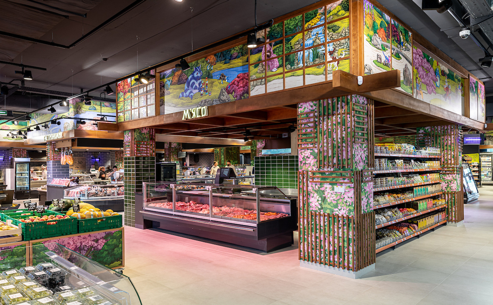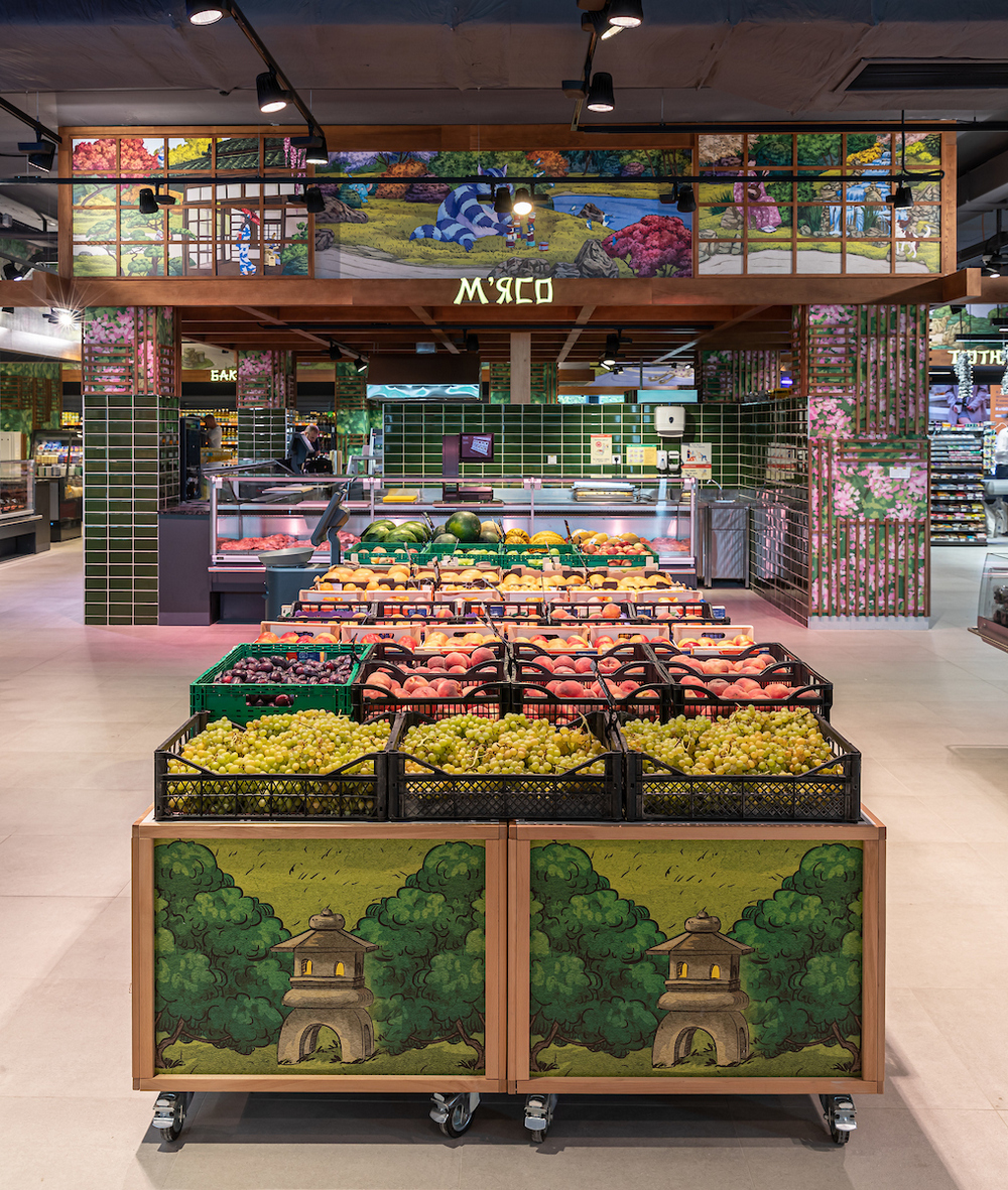 В Сільпо с концепцией японского сада дизайнеры стремились создать уютный и спокойный интерьер. Дизайн магазина воспроизводит близость к природе, чтобы помочь помедитировать за шоппингом, восстановить силы и обрести гармонию.