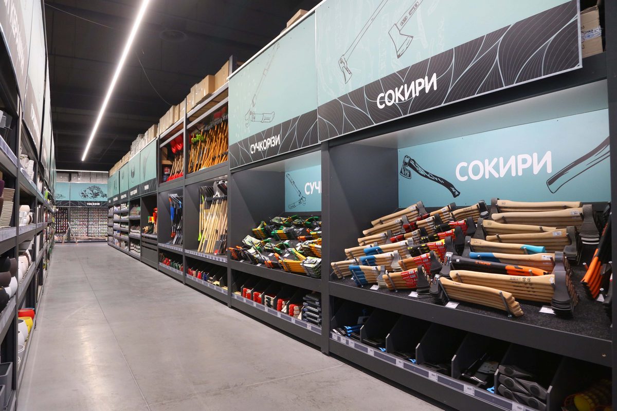 На втором этаже торговое пространство организовано в формате open space с минимальным количеством высотных стеллажей. Благодаря этому покупатели могут видеть большую часть ассортимента из любой точки торгового зала и быстро найти все необходимое.