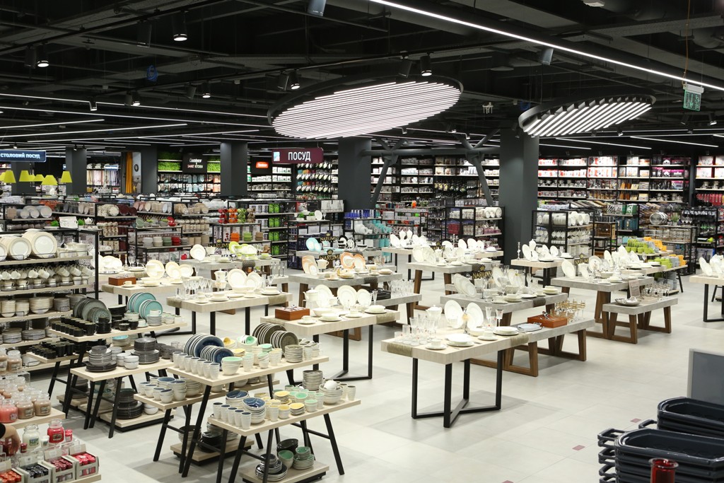 На торговой площади почти 3000 кв. м представлен широкий ассортимент товаров для дома: более 10 000 артикулов посуды, домашнего текстиля и декора.