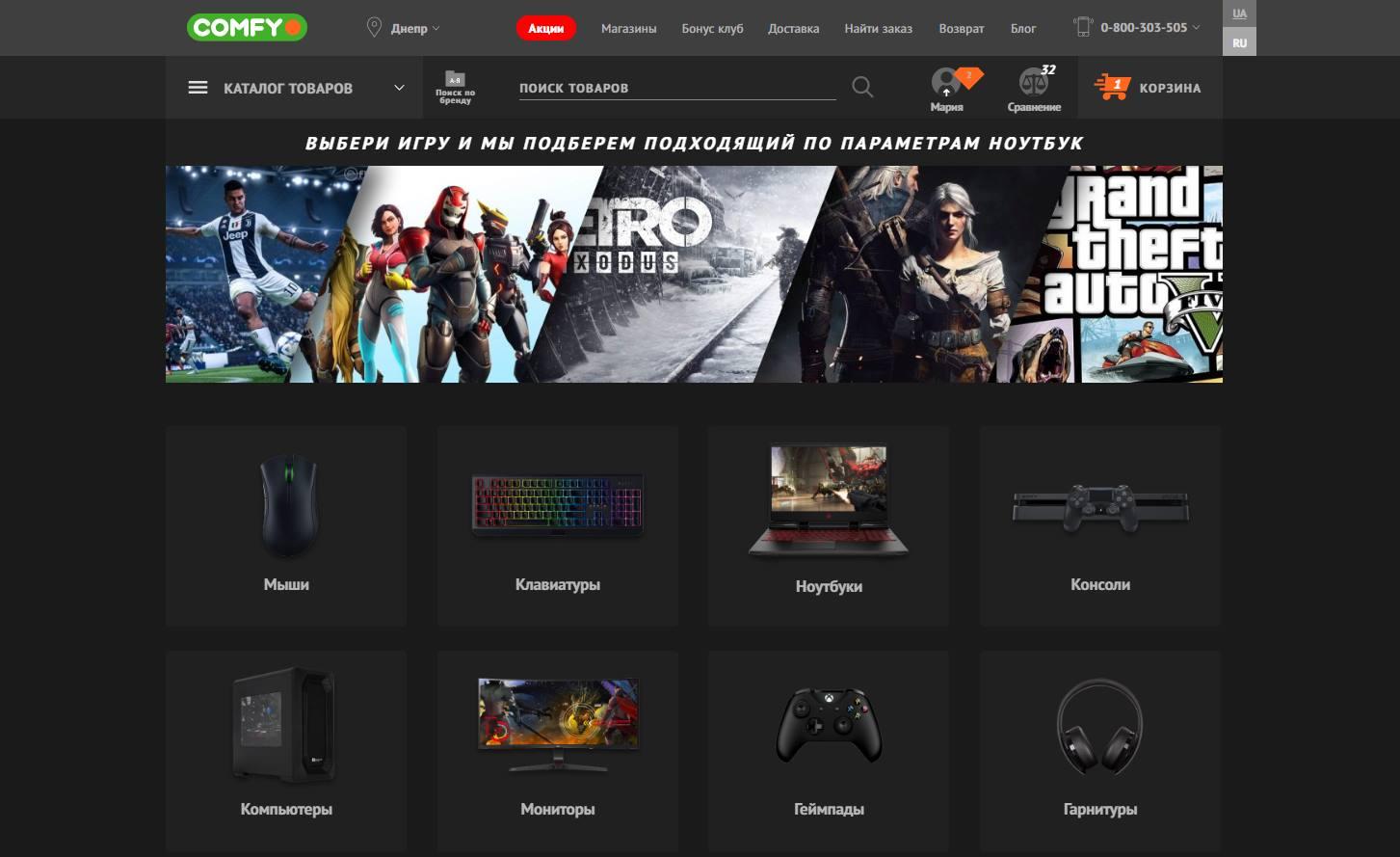 Мы много экспериментируем, используя сервис-дизайн. Например, поведение покупателя холодильника и геймерского гаджета – это два абсолютно разных клиентских пути. Соответственно, клиентские ожидания, болевые точки и барьеры в принятии решения тоже разные. И если в крупнобытовой технике мы давно и прочно закрепили свое лидерство, то, например, в категории гейминга у нас еще очень много возможностей. В эту категорию мы включаем консоли, компьютеры, ноутбуки и аксессуары. Comfy является лидером по продаже игровых приставок в Украине и для нас это очень интересная категория. Изучив глубоко покупательское поведение геймеров, мы нашли много полезных инсайтов, которые реализовали для этой категории.
