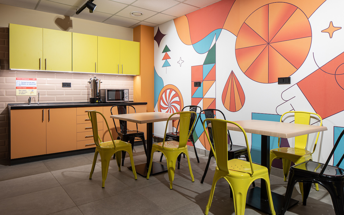 Калейдоскоп барв різноманітних вітряків можна побачити і у відділах власної пекарні та кондитерської, де продаються різноманітні солодощі та кондитерські вироби.