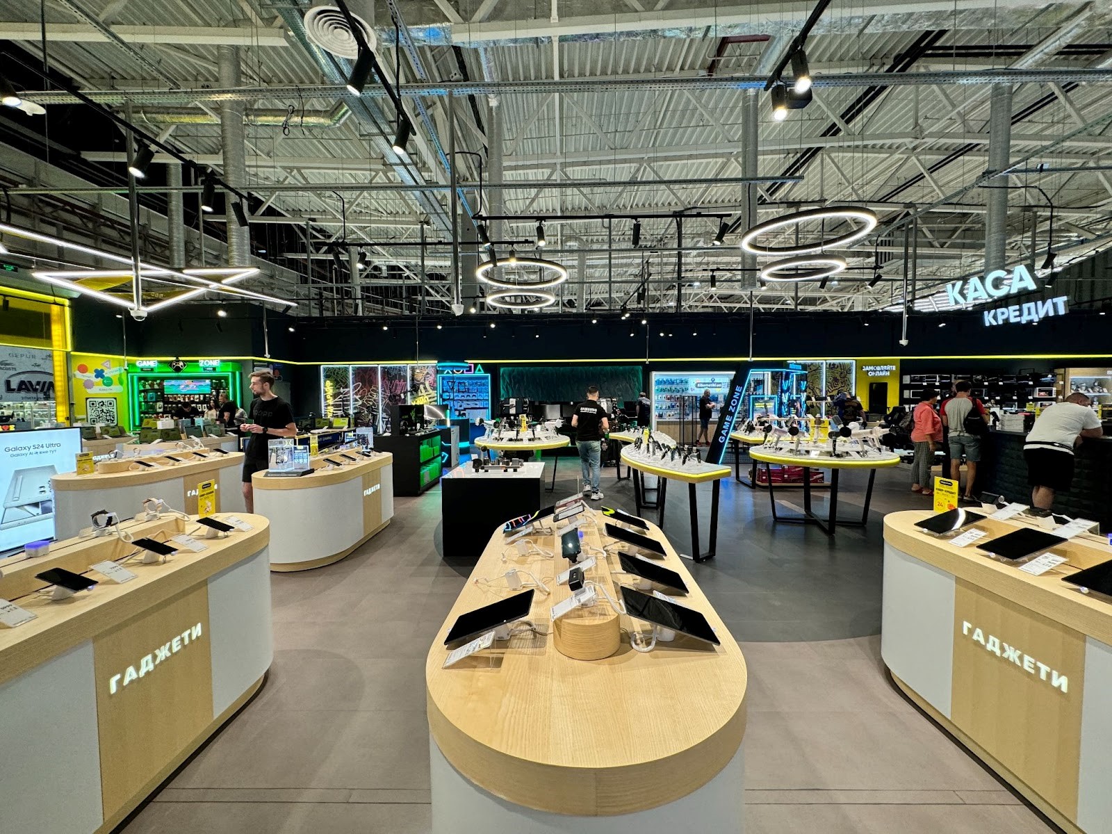 Это самый большой магазин сети Кібернетики и отличается не только своими размерами, но и расширенным ассортиментом. В магазине представлены кроме смартфонов и компьютерной техники также мелкая и крупная бытовая техника, девайсы для красоты и ухода, интеллектуальные игры и конструкторы Lego.