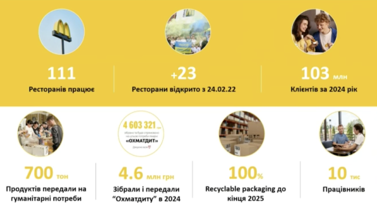 В настоящее время в Украине работает 111 ресторанов. Несмотря на все вызовы, после 24 февраля 2022-го сеть открыла 23 новых локации. Для компании – это вера в Украину. И это тоже сигнал не только людям, но и другим бизнесам и инвесторам. Когда McDonald’s открывает новую локацию, часто можно услышать: “Если McDonald’s открыл здесь новый ресторан, они точно знают, что все будет хорошо”. То есть компания дарит людям веру и оптимизм.