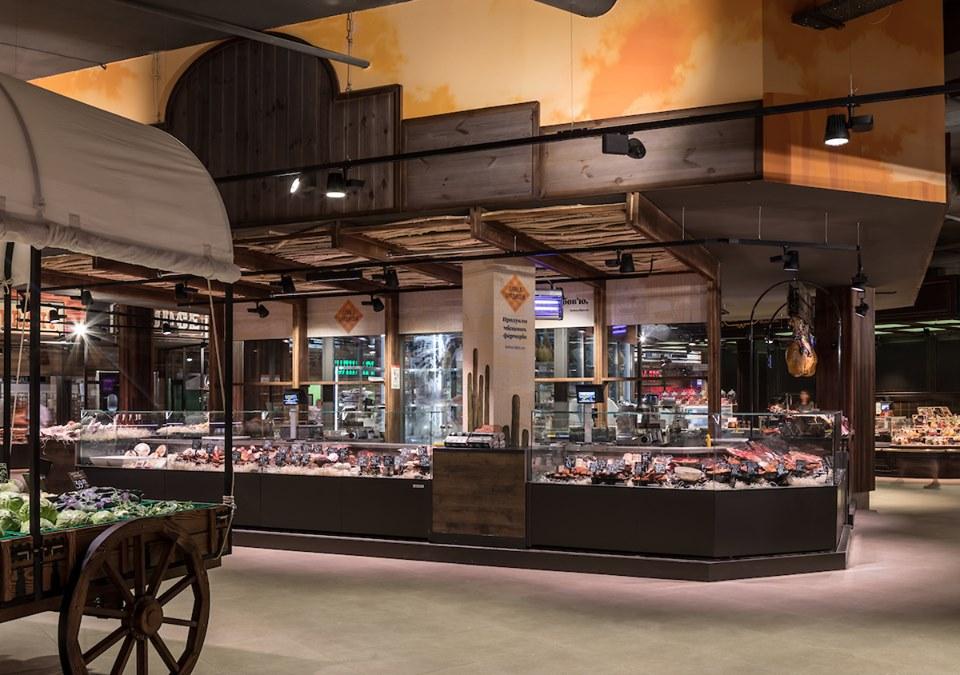 Клиенты магазина также смогут заказать блюда из гриля на дровах, пиццу, приобрести продукты от локальных производителей «Лавки традиций», хлеб и выпечку собственной пекарни.
