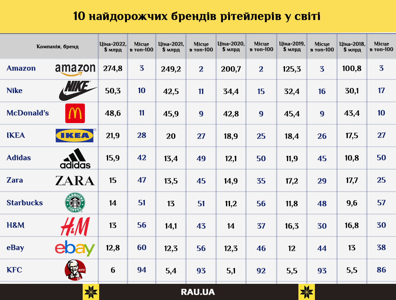Топ-10 самых дорогих в мире брендов ритейла по версии Interbrand