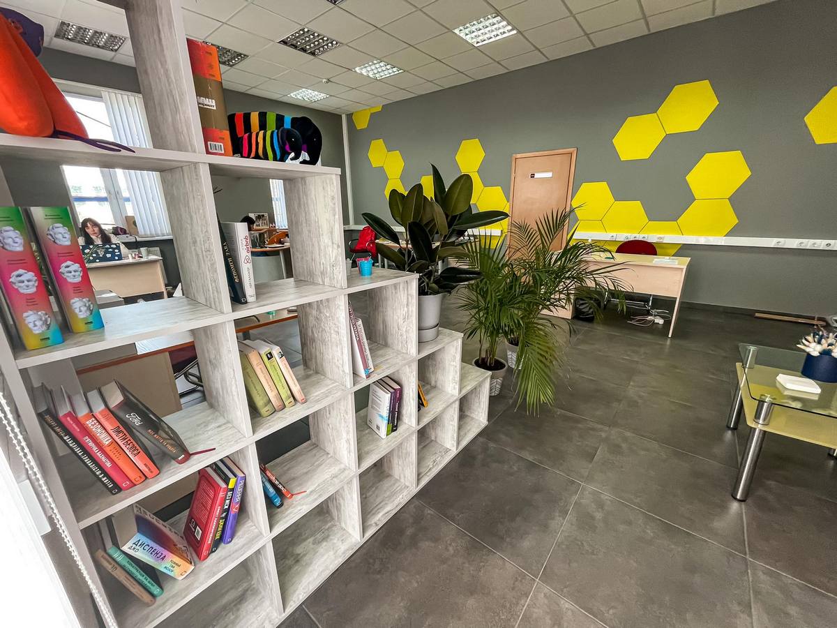 В августе RAU отпраздновала новоселье, переехав в новый офис в самом центре столицы. Его оформлением также занимались специалисты компании Synergy Construction. Здесь использовано сочетание контрастных цветов: серый и желтый, трафаретное нанесение сот, которые являются символом RAU, на стены, а напольное покрытие выполнено из керамогранита.
