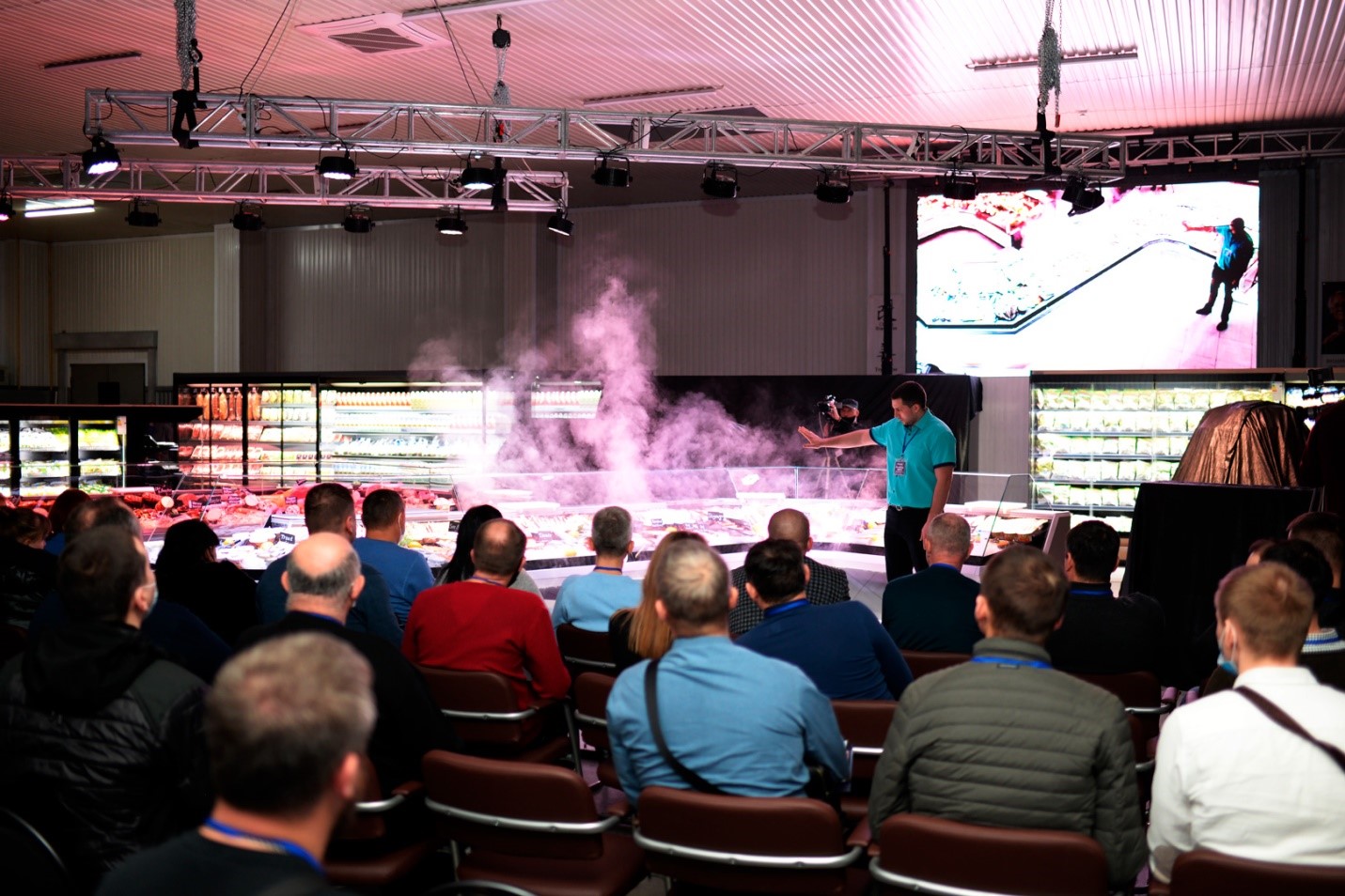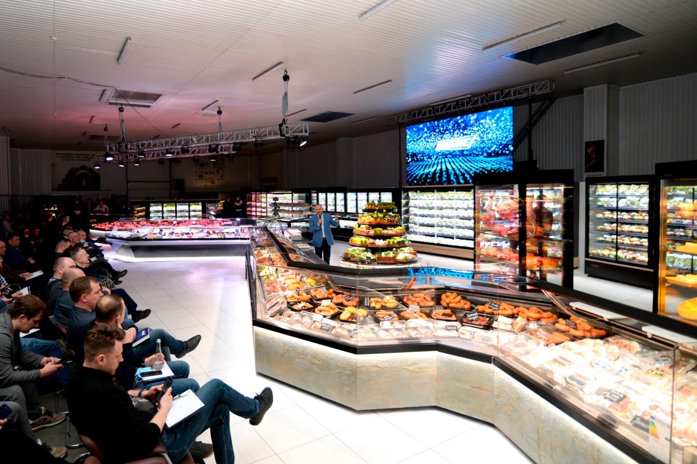 Another focus of the seminar was the island of multideck cabinets “Indiana MV 080.” Cabinets in cubic design at a height of 1600mm allow you to create self-service areas without overlapping the space in the trading space. Cabinets are designed with a minimum beveled top plate for maximum visibility of the product. The island featured modules for frozen products “Indiana MV 080 LT,” medium-temperature “Indiana MV 080 MT” and “Indiana MV 080 MT D” with open doors, and heating “Indiana MV 080 heat.”
