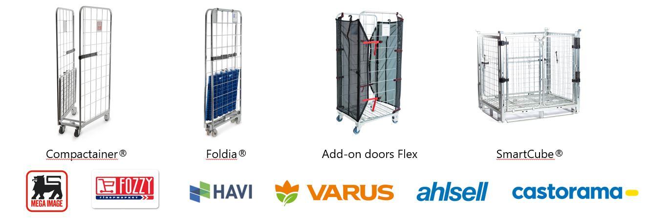 – We can offer a large variety of our products but for retailers the most interesting are 2-sided, 3-sided, 4-sided Roll Containers (A-Frame Compactainer or Foldia).