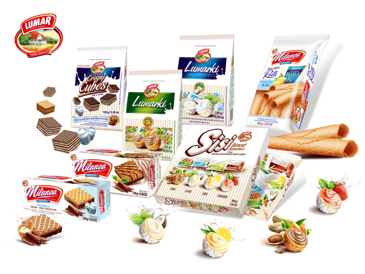 Lumar is Polish confectionery manufacturer founded in 1992 as a family company. Over 30 years of work, businessmen have created a modern company with a fully equipped factory and highly qualified specialists. Lumar specializes in the production of waffle pralines and balls, waffles, biscuits, chocolate and buttered wafer rolls. One of Lumar’ features is molded waffles, atypical shapes such as balls, fancy waffles, waffle cakes and chocolates.
