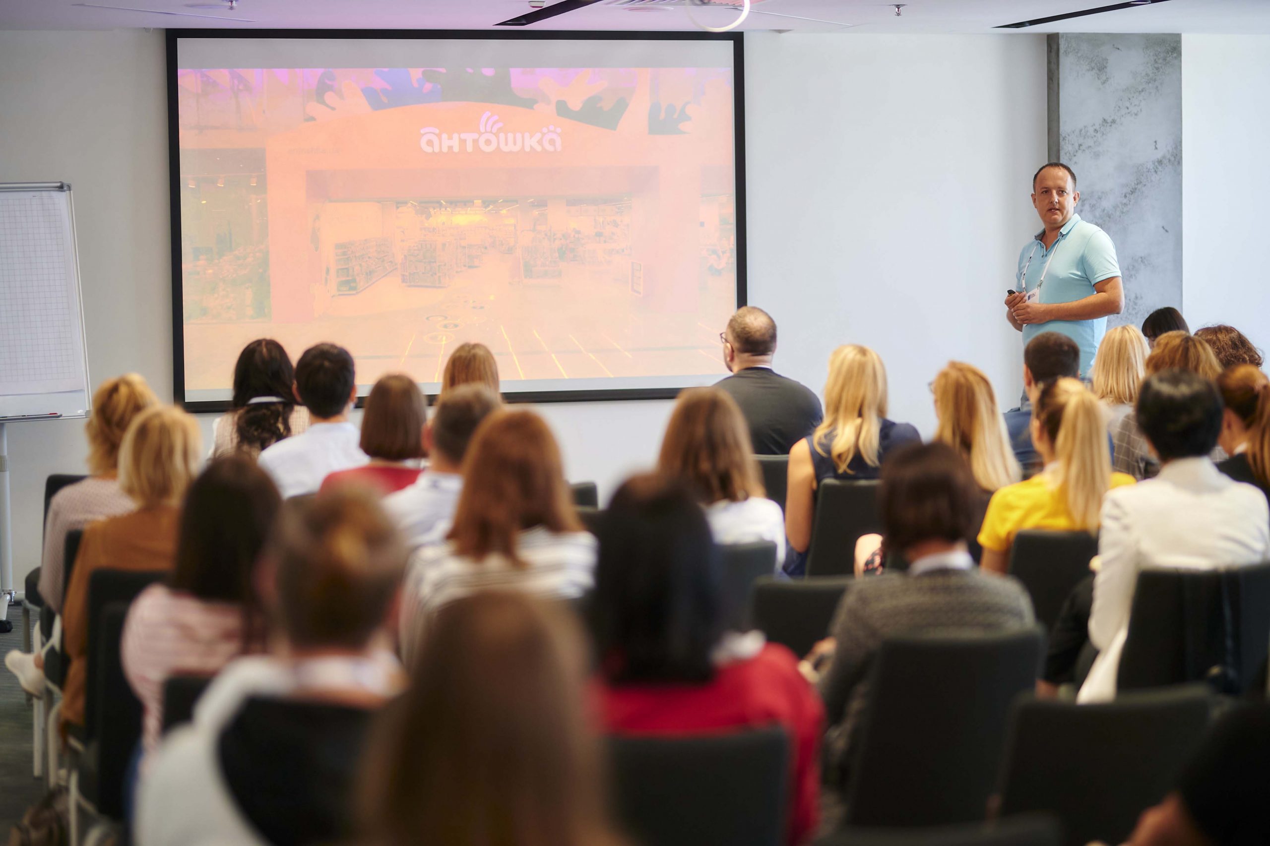 Першим спікером ділової програми став директор з операцій і розвитку Антошка Іван Чивкін. Ключовою темою його виступу був сервіс, як основна конкурентна перевага. Він розповів, які саме трансформувався сервіс мережі Антошка за період карантинних обмежень та чому сервіс – це не завжди про гроші.