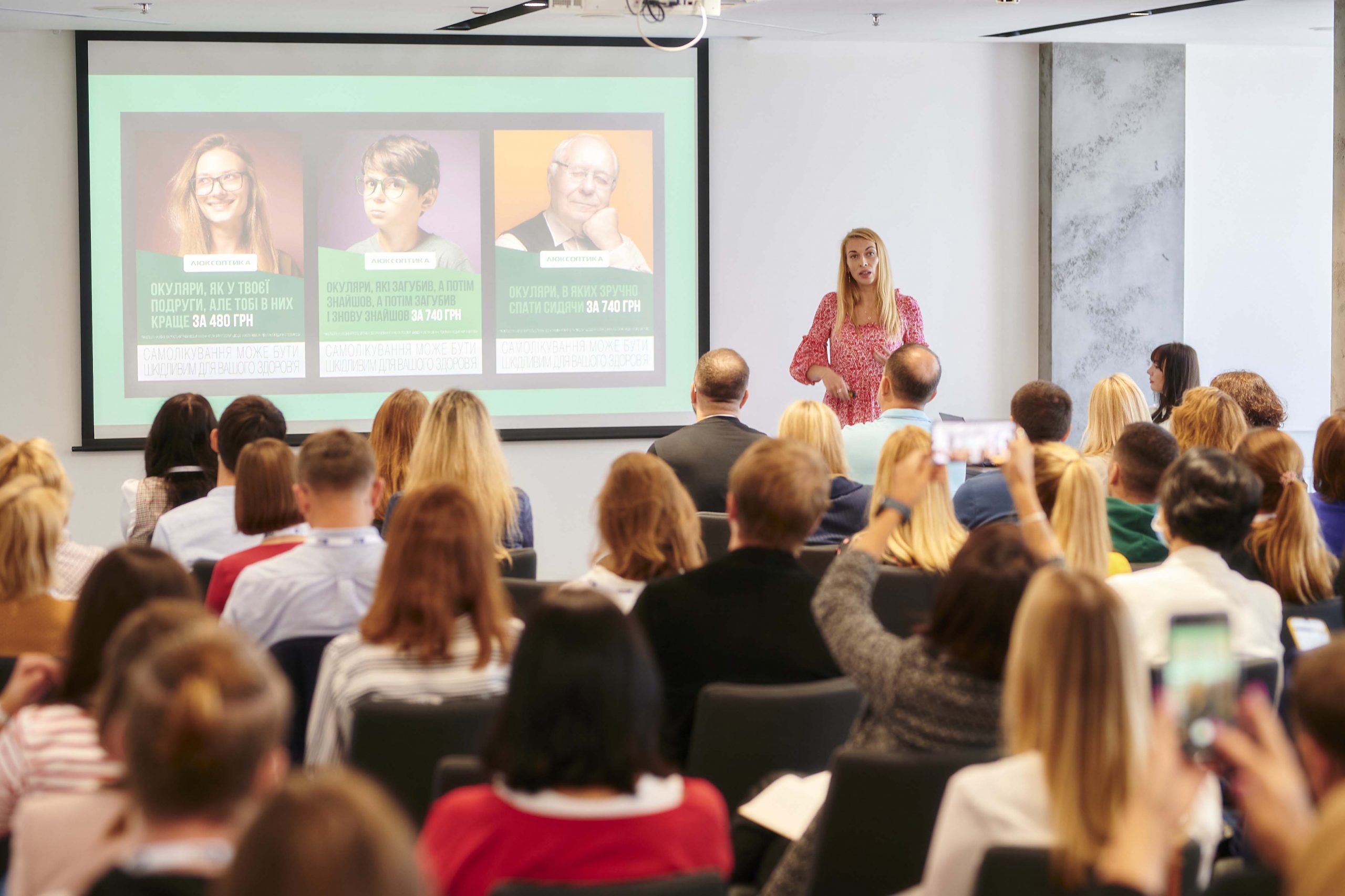 Наступною з презентацією “Наслідки локдауну. Що допомогло залучити нових клієнтів” виступила CMO Люксоптика Віолета Титаренко. Вона говорила про те, чи можливо змінювали все, не змінюючи стратегії, що сталося з онлайн-продажами після локдауну, які плани в компанії на осінь та чому Люксоптика раптово зробила ставку на сонцезахисні окуляри.