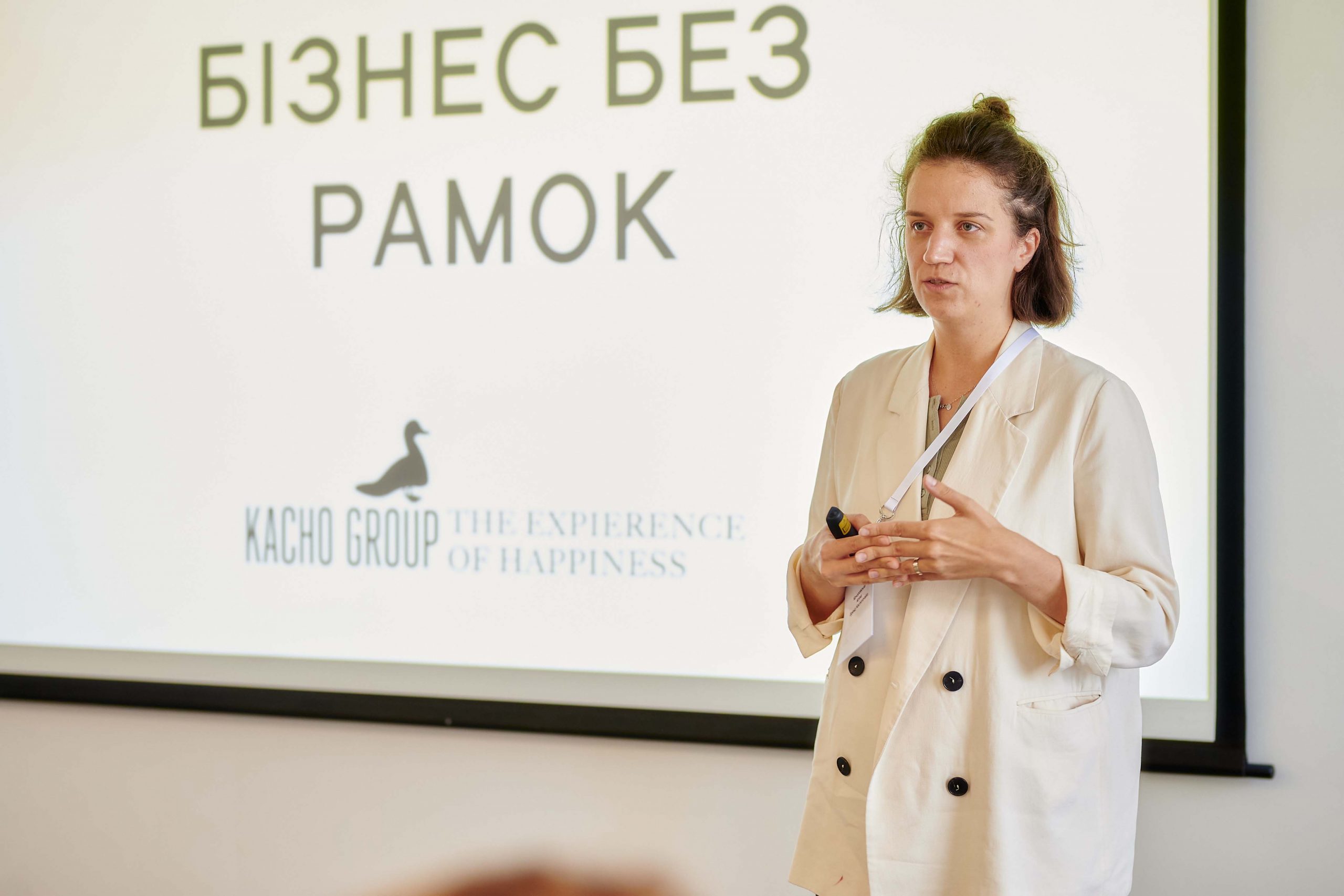 Останньою слово взяла CEO Kacho Group, співзасновниця бренду Kachorovska Аліна Качоровська. Вона говорила про пошук нових ніш і форматів рітейлу, орієнтацію на локальність та Kacho Post, як нову модель продажів, що може працювати в локдауни.