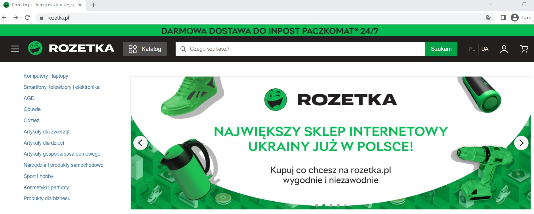 Rozetka, the largest online retailer in Ukraine, has launched delivery to Poland last autumn.‑ The company realized its first European experience was a success, for in half a year, in March 2023, Rozetka levelled-up in terms of expansion and launched an online store, albeit in a test mode for now. Rozetka Poland offers such categories of the goods as household appliances, electronics, clothes and footwear, children goods, pet goods, household items, tools, etc. The purchases are delivered throughout the country.