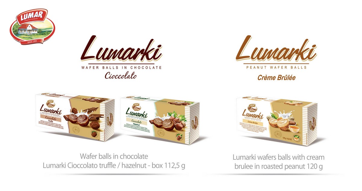 Today Lumar’s products come in wide array of flavours and shapes: formed wafers, biscuits, chocolate candies, wafer pralines, wafer balls and butter wafer rolls.