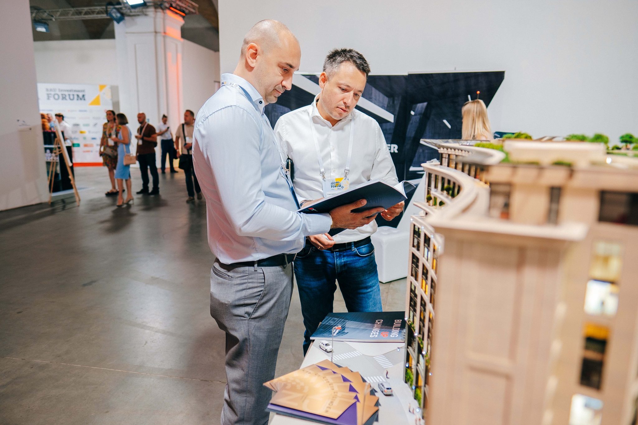 Maxim Gavryushin (Operational Director of the Budhouse group, Head of ICSC Ukraine) and Konstantin Slyusarenko (Head of the Intertop Development Sector) are considering the elite residential complex Linden project