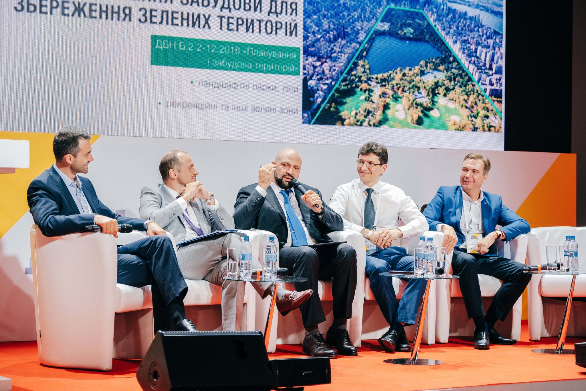 Experts of the first session are discussing current issues of the Ukrainian real estate market. From left to right: Sergey Sergienko (CBRE), Yuriy Petrenko (Ader Haber), Lev Partsakhaladze (Deputy Minister of Regional Development, Construction and Housing and Communal Services of Ukraine), Vladimir Timochko (Dragon Capital), Andrey Kozin (Focus Estate Fund)
