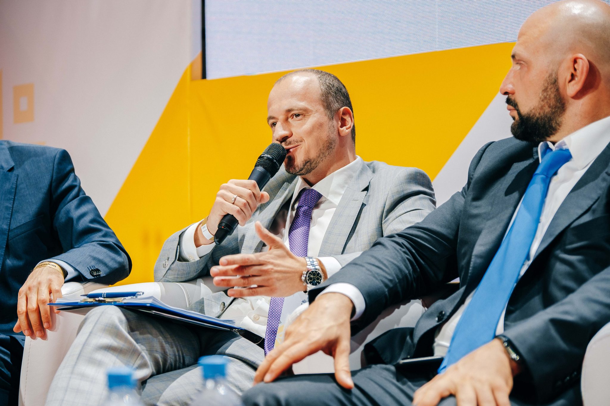 The moderator of the first session, Sergey Sergienko (CBRE Managing partner), is sharing his expert opinion on investment in commercial real estate