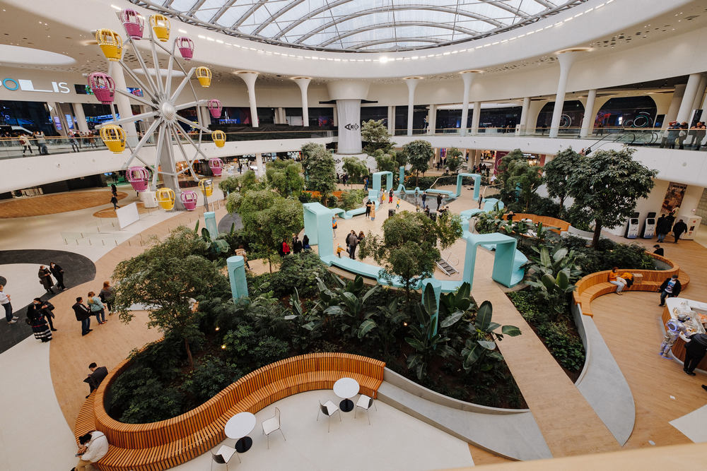 Among the advantages of the shopping mall Respublika Park are the unique public space “Oasis” with living plants (with a total area of 2000 sq.m), the first wind tunnel in Ukraine (20 meters high, 16 meters of free flight), the innovative digital-amusement park Neopolis with a huge selection of VR and AR-attractions and an e-sports zone (with an area of 11,000 sq. m), the largest roller coaster in Europe under the roof of the mall.