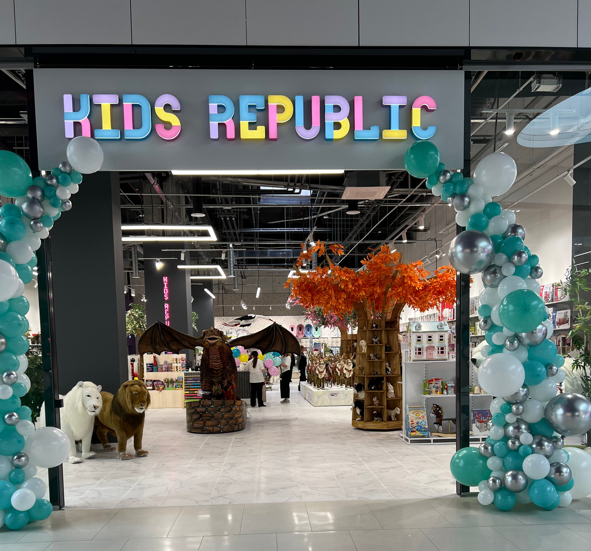 A real highlight is the flagship store of children’s goods, Kids Republic, with a total area of over 450 square meters. It’s the largest store of the brand’s network, a whole fairy-tale world featuring renowned global brands such as Hansa Creation, New Classic Toys, Casdon, Trousselier, Bblüv, and more than 30 European and American brands of toys, clothing, and childcare products. Here, you can find unique gifts for children and enjoy fun and educational time with the whole family in an exciting atmosphere.