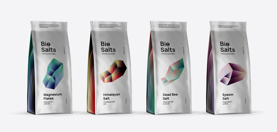 Ще один тренд упаковки – використання градієнтів з голографічним ефектом, коли упаковка переливається різними кольорами. Цей тренд пов’язаний із захоплюючим ефектом блискучої різнокольорової “металліки”, який дизайнери поєднують з графікою і чорним або білим фоном для створення більш яскравого враження.