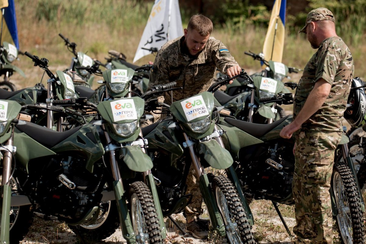119 мотоциклів для ЗСУ: мережа Eva до Дня Незалежності здійснила найбільшу передачу мототехніки військовим (+фото)