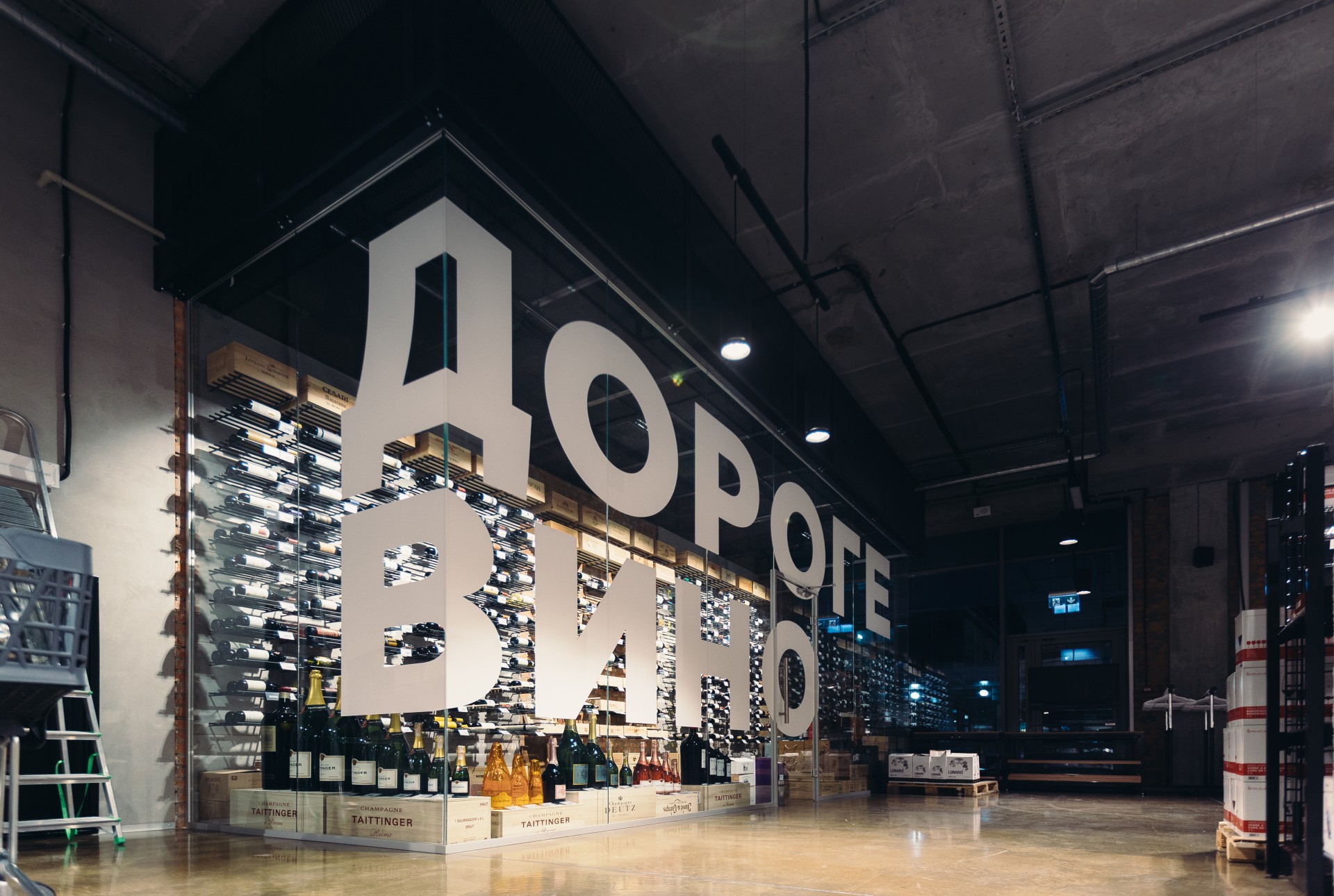 Магазин-склад площею 1200 кв. м – роздрібний проект власників GoodWine та компанії Бюро Вин, почав роботу в листопаді минулого року. Склад-магазин розташовується в будівлі на території житлового комплексу RiverStone, на Дніпровській набережній, 14 К.