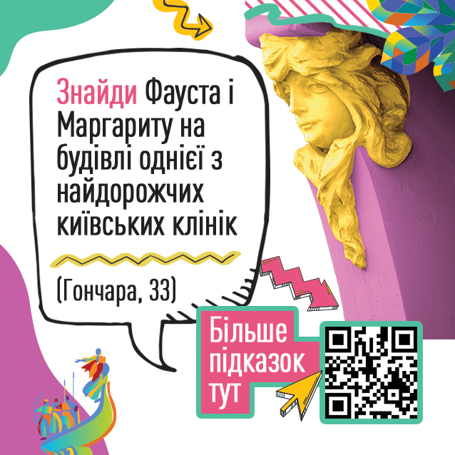 Ви можете прогулятись центром міста і відшукати 20 архітектурних секретів столиці, користуючись підказками-маршрутами, які спеціально для KLO розробила Юлія Бевзенко, досвідчений гід по Києву. Юлія відома своїми екскурсіями містом, під час яких люди закохуються в нього і після бажають дослідити Київ самостійно.