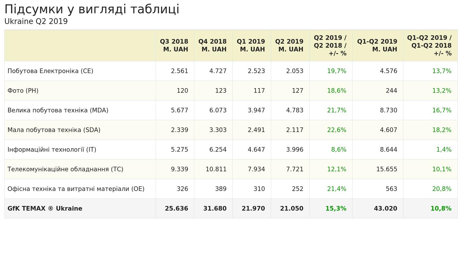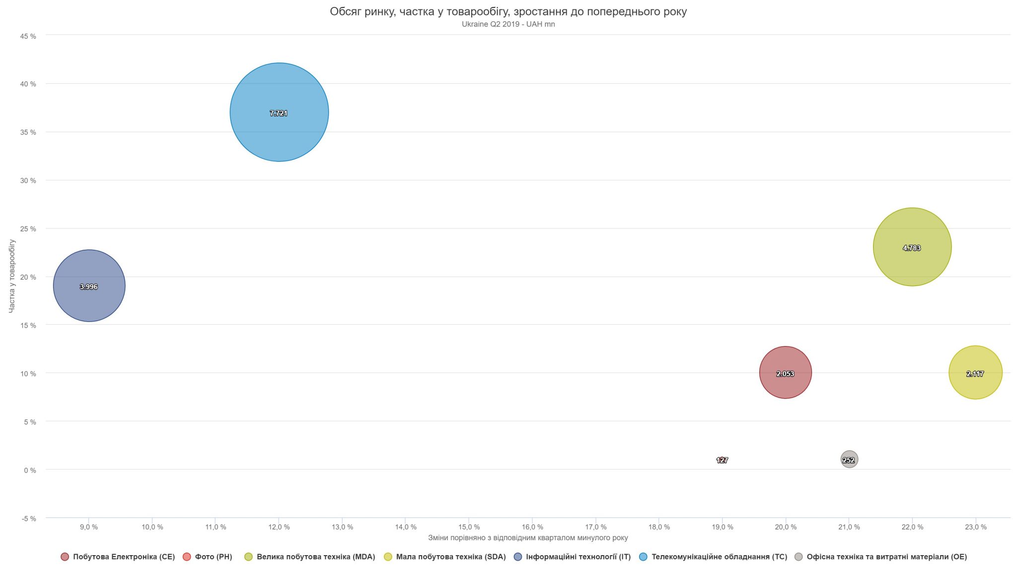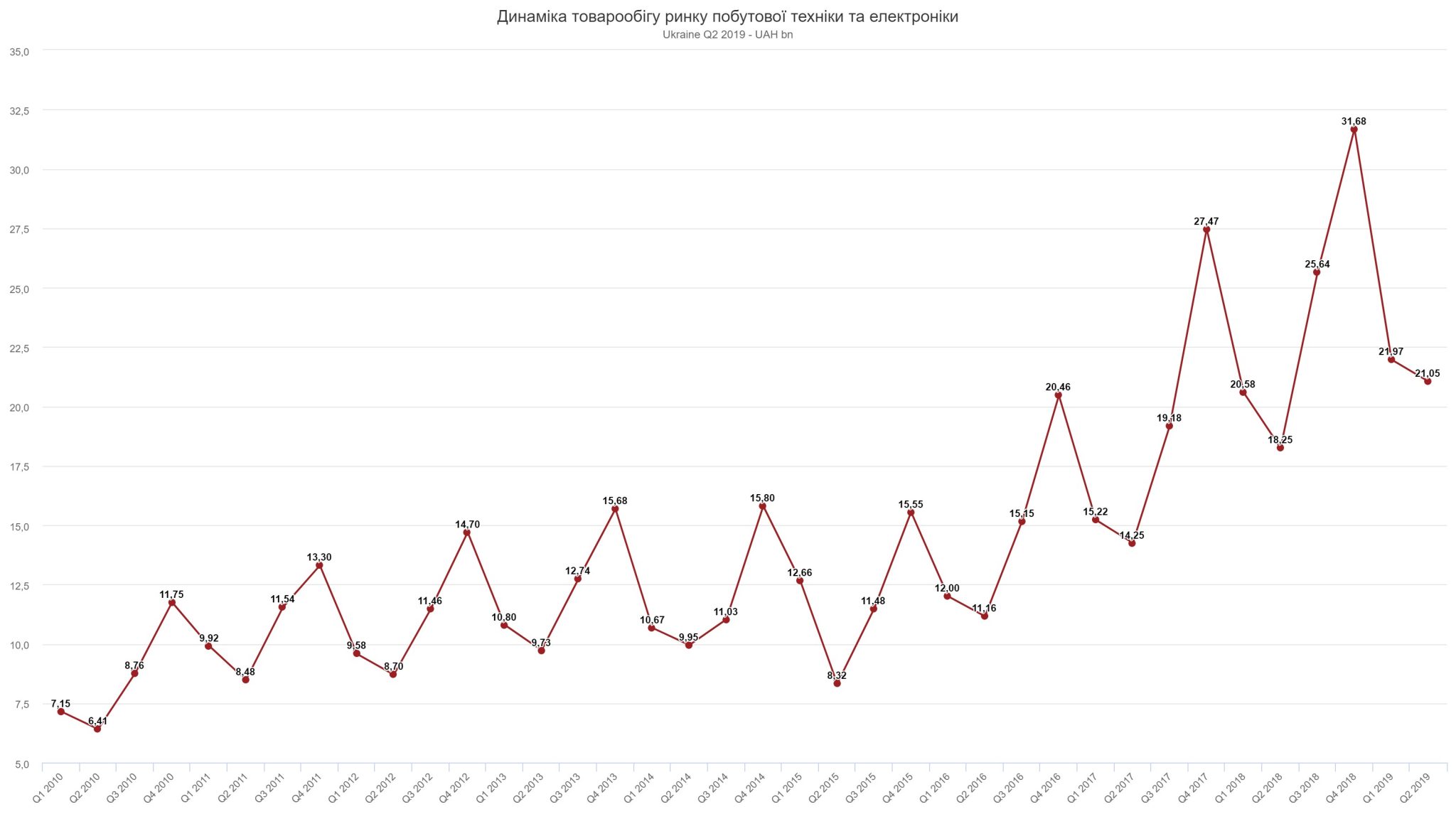 Загальний обсяг продажів на українському ринку технічних споживчих товарів у ІІ кварталі 2019 року зріс на 15% порівняно з аналогічним періодом минулого року.