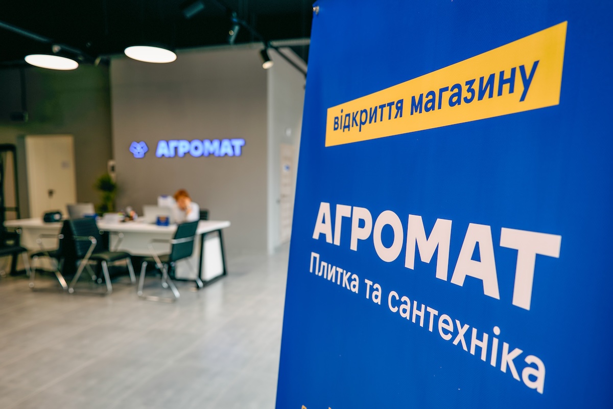 Довідка. Агромат — національна мережа магазинів плитки та сантехніки. Заснована в 1993 році та нараховує 31 магазин у 20 містах України. Найбільший магазин, площею 16 000 кв. м, розташований у Києві на вул. Академіка Булаховського, 4.