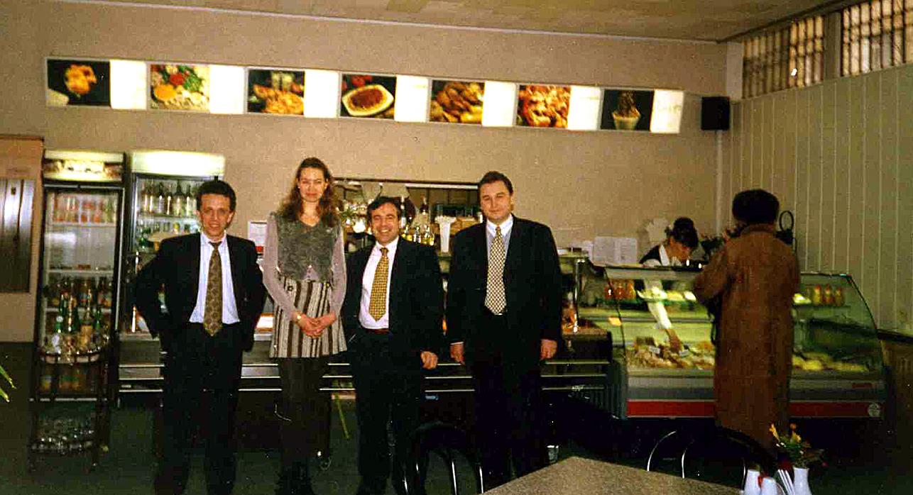 - Першим покупцем італійських холодильних вітрин і гастрономічних буфетів в 1995 році стала мережа ресторанів «Пан–Піца» одеського ресторатора Савелія Лібкіна.