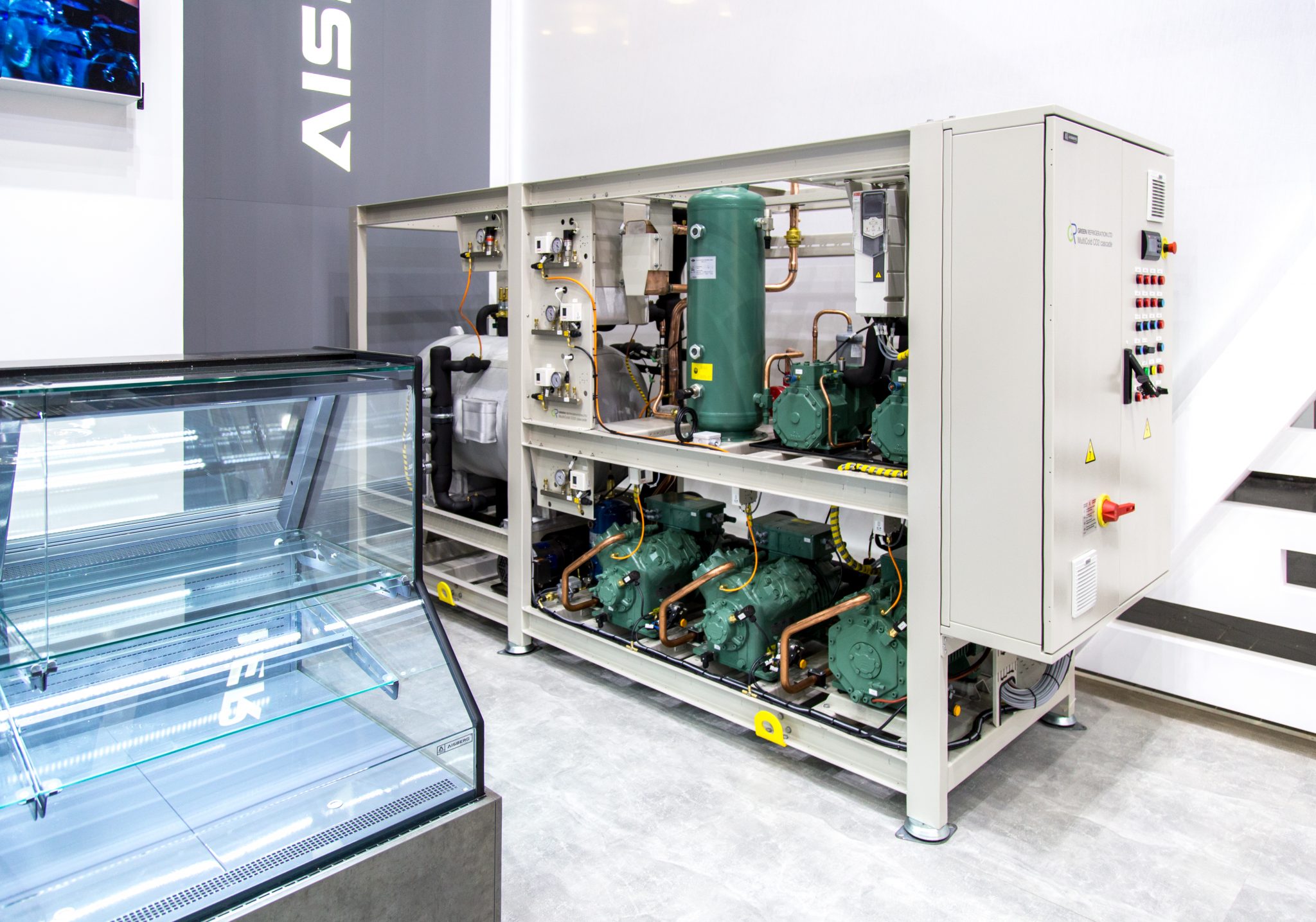 Aisberg презентував обладнання на екологічних хладагентах з допустимим рівнем GWP згідно регламенту ЄС по F-газам і захисту озонового шару. Це субкритична (каскадна) мультикомпрессорна установка на СО2 з використанням компресорів Bitzer (Німеччина) і автоматики Danfoss (Данія).