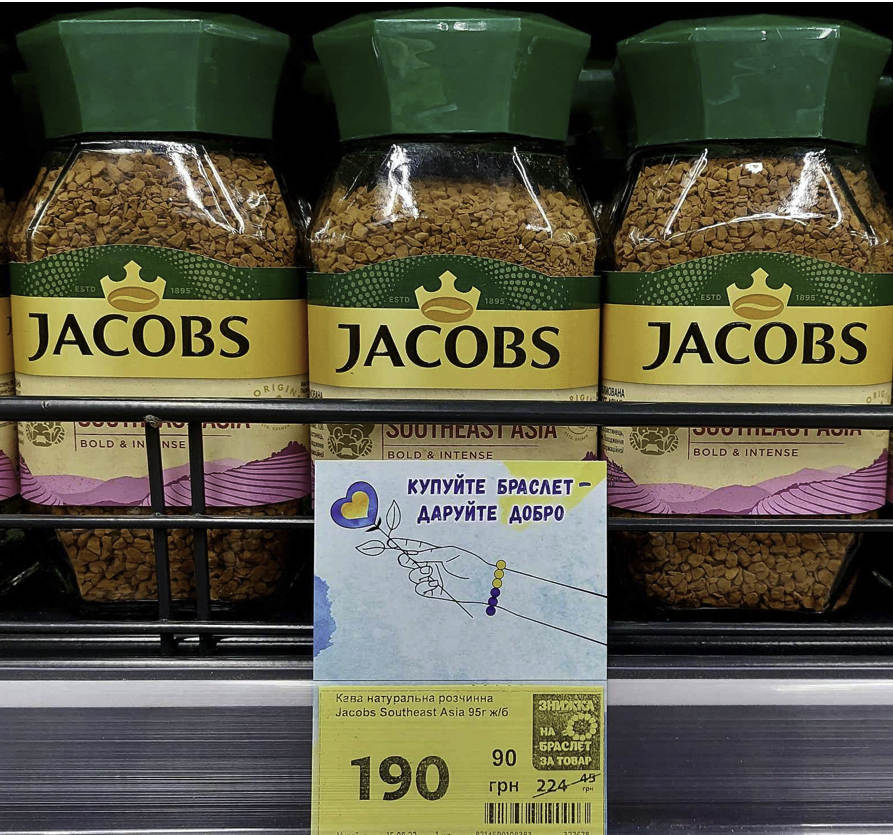 Купуючи товари партнерів, які виділені спеціальним цінником, покупець має змогу придбати браслет ручної роботи за акційною ціною 59 грн або окремо придбати браслет за 150 грн.