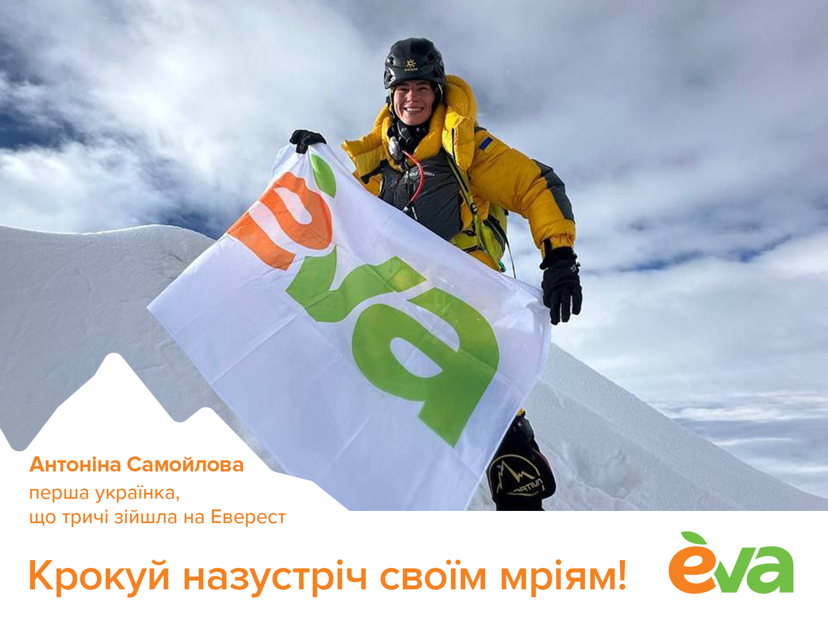 Альпіністка Антоніна Самойлова за підтримки Eva втретє підкорила найвищу гору планети