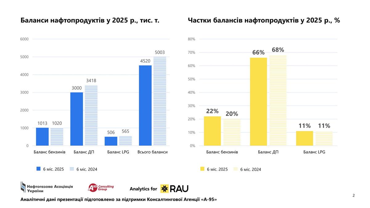 Баланси нафтопродуктів за 6 місяців 2025 року