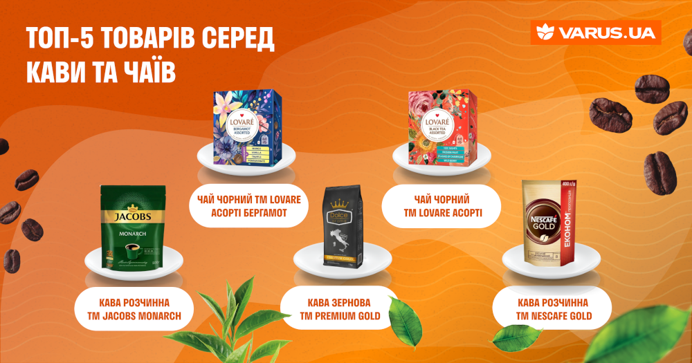 Зима — це також період особливої популярності традиційних зігріваючих напоїв. Із широкого асортименту кави та чаїв клієнтиі найчастіше обирали: Кава розчинна ТМ Nescafe Gold та ТМ Jacobs Monarch, чай чорний та зелений асорті від ТМ Lovare, кава зернова ТМ Premium Gold Dolce Aroma.
