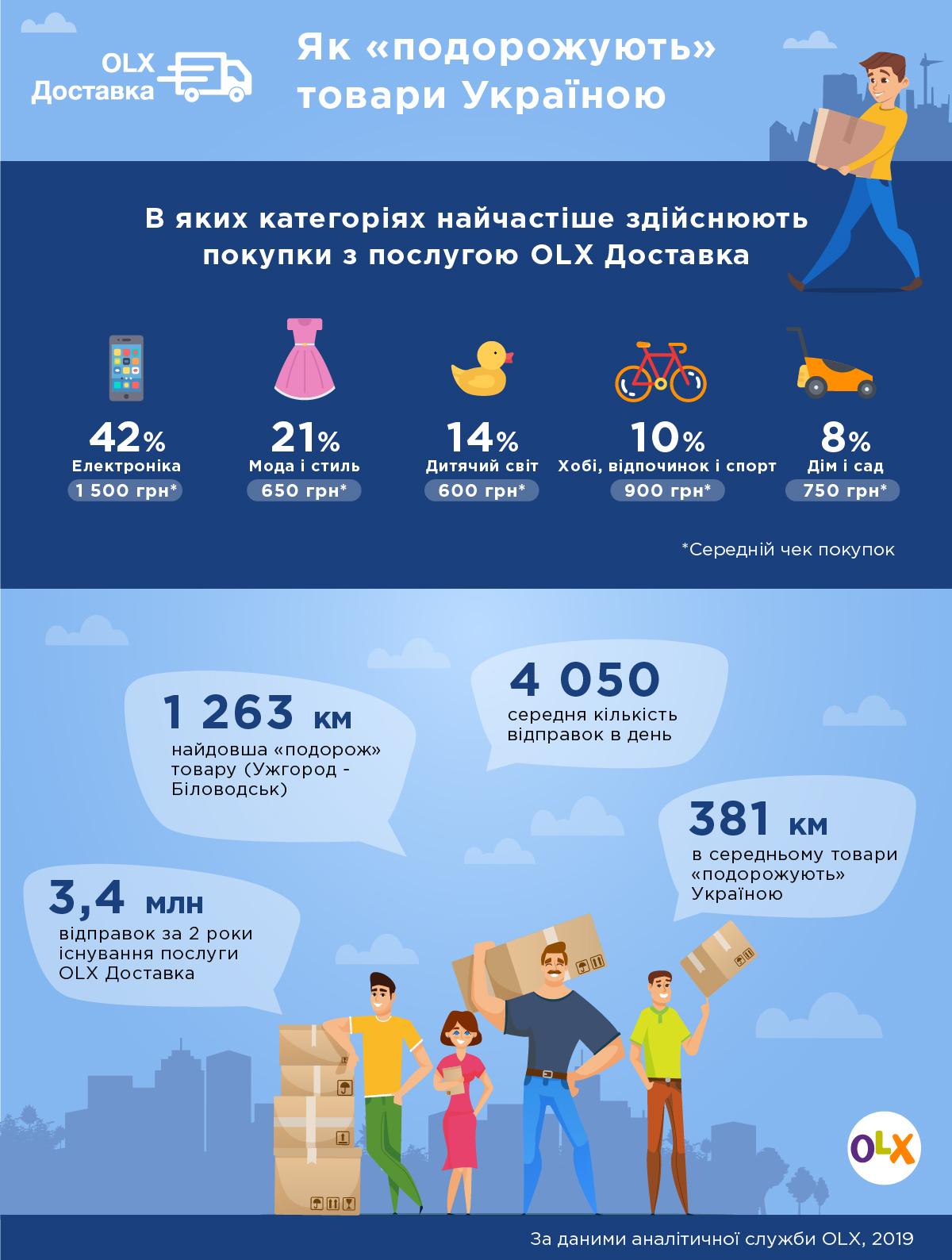 За два роки існування послуги OLX Доставка користувачі здійснили 3,4 млн відправок. Найчастіше пересилають електроніку, одяг та товари для краси.